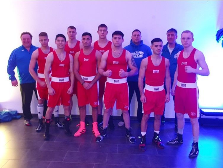 Pandemiebedingt gibt es in dieser Saison (wieder) nur eine 1. Boxbundesliga und das mit einer Minimalteilnahme von 4 Staffeln. Titelverteidiger Traktor Schwerin, Hannover- Seelze, Debütant München und die in der 29. Ligasaison boxenden Chemnitzer Wölfe. Zum ersten Auswärtskampf bei den Schweriner Traktoristen (12.02.22) waren mit Jan Ualikhanov (63,5kg- vorn, 1. v. l.) und Aram Aibyan (81kg- vorn, Mitte) zwei Boxer des Boxteams Oelsnitz dabei. Jan konnte mit einer taktischen Meisterleistung seinen Kontrahenten Simon Rieth (Hamburg für Schwerin) klar nach Punkten bezwingen. Das war bemerkenswert, da Jan nach mehr als 2 Jahren und der Demotivation durch die kurzfristige Absage der Teilnahme der Bundeswehr an Militär- WM im September 21 erstmals wieder im Ring stand. Im ungewohnten Limit bis 81 kg, Aram war im November 21 in der Klasse bis 86kg Deutscher Meister U22 geworden, war schon der Gang auf die Waage die erste große Herausforderung. Die zweit stand Aram dann im Ring in Gestalt des Nationalboxers Ben Ehnis (Köln für Schwerin) gegenüber. Im über weite Strecken offenen Schlagabtausch hatte der für den Gastgeber startende Ehnis aus Sicht der Punktrichter die berühmte Hand mehr im Ziel, so dass Aram eine Punktniederlage hinnehmen musste.